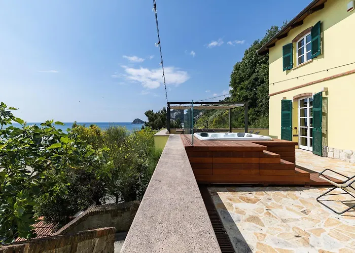 Offering a terrace overlooking the sea, Profumo Di Mare - Villa Con Jacuzzi Bergeggi is located approximately a 5-minute walk from Percorso Botanico di Bergeggi. Providing guests with Wi-Fi and free private parking, this 2-bedroom beachfront villa is 4.1 km from Bagni Margherita.